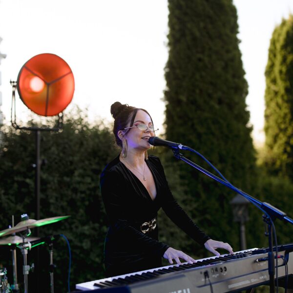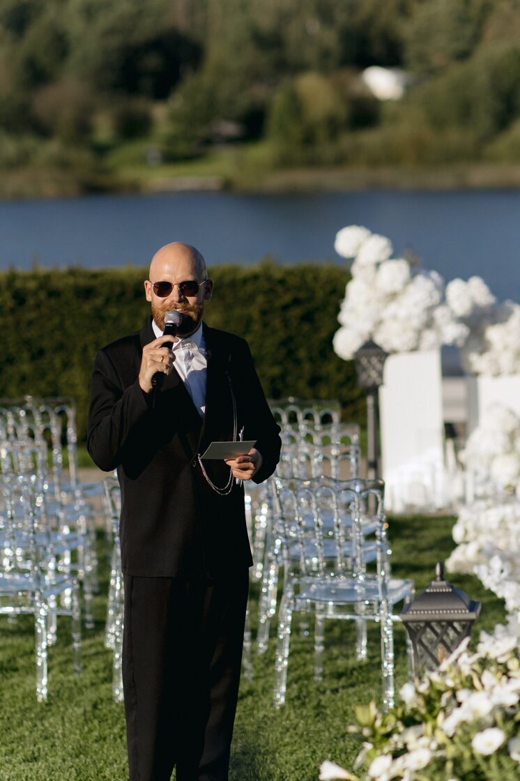 - Вся свадьба проходила под открытым небом. У гостей была возможность свободно перемещаться, общаться, отдыхать в чилл зонах и вечером танцевать под живую музыку и под звездным небом